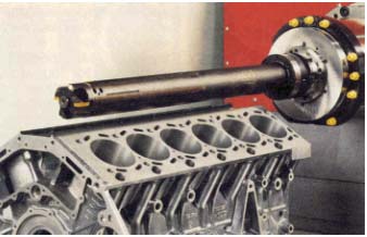 Up to now normal procedure has been to use a standard length boring bar and bore from both sides by indexing the components. This, however, is time-consuming and owing to the high accuracy of the operation, is not the optimum solution. Alternatively, a "special" machine is used for this particular operation. It is now possible, and this is the deciding advantage, to offer a machining center that eliminates the need for indexing or using a "special" machine.