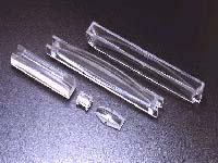 The rastor machining process requires the part to be fixtured in a static condition, while its relationship with the cutting tool or wheel might move simultaneously in 3, 4, or even 5 axes. This type of machining is now possible, either directly by rastor flycutting on nonferrous metals, polymers, and crystals, or by rastor grinding glass or mold inserts. Examples of these "freeform" geometries might be advanced laser printer optics, as shown, or "conformal" windows that blend into the leading edge of an aircraft's wing.